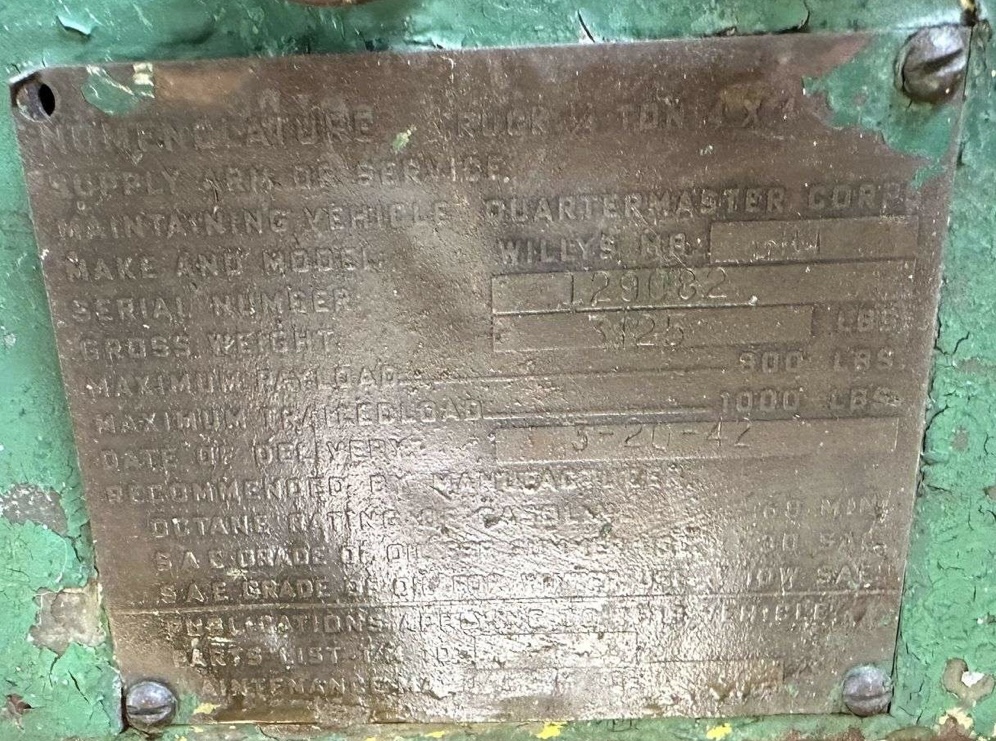 | Ford GPW | 101115 | Sat 5:00pm, Oct 18th | Tim Baltz | College Grove | Tn | USA |