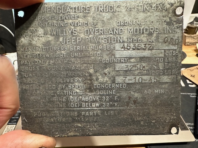 | Ford GPW | 30925 | Tue 1:08pm, Feb 10th | Clive Cousins | Whaplode | Lincolnshire | England | |